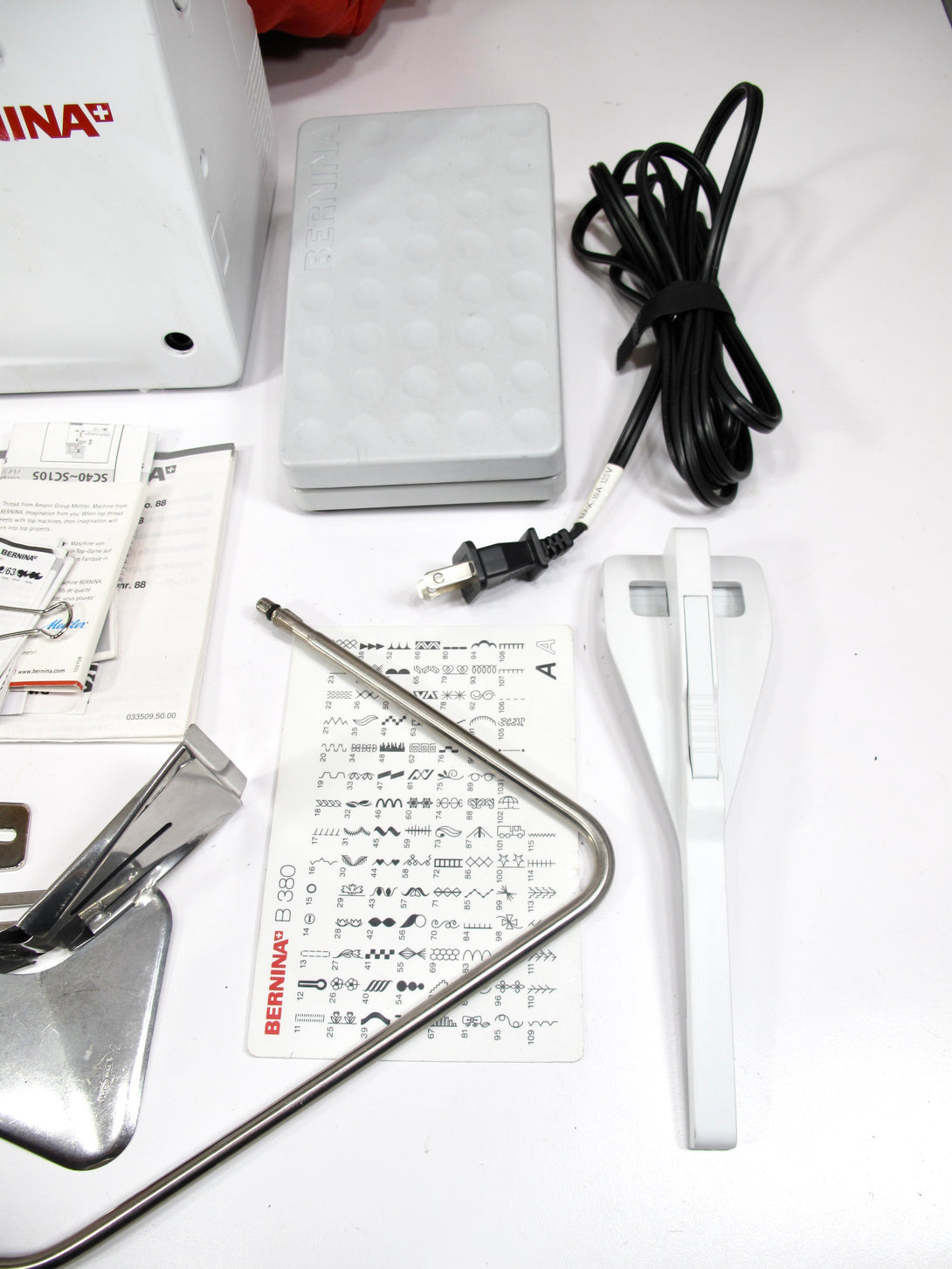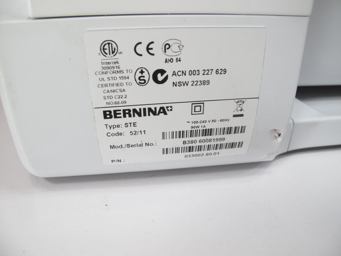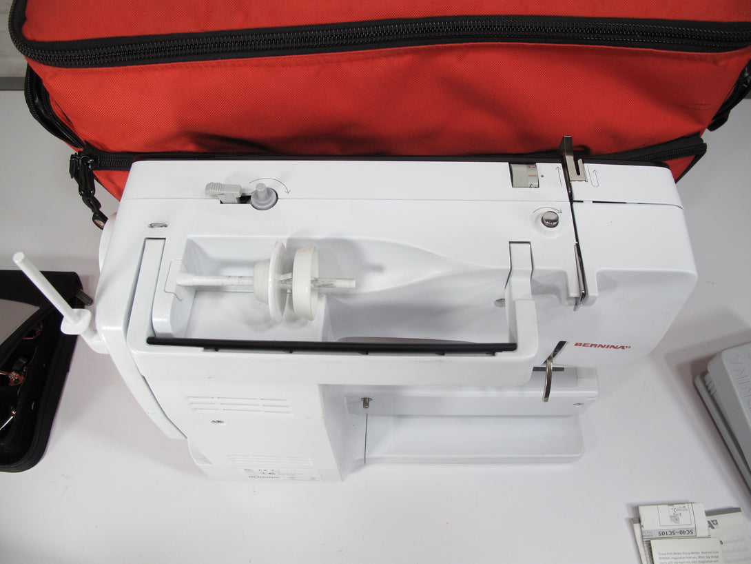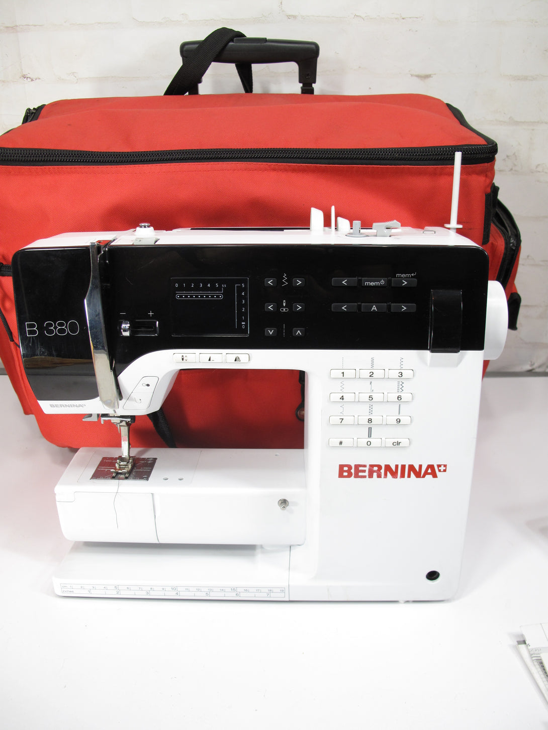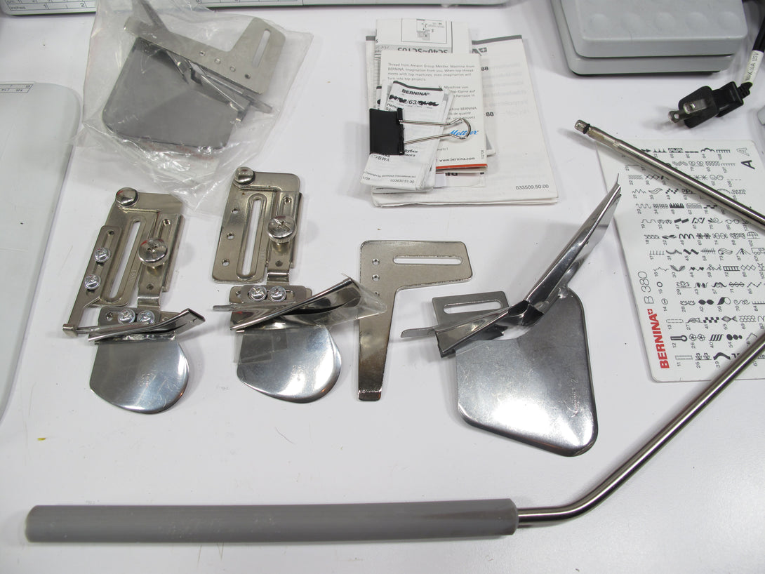 The BERNINA 380 is a computerized sewing machine with features like a built-in needle threader, adjustable stitch length and width, one-step buttonholes, and an automatic thread cutter. It also includes a needle up/down function, a free arm for sewing...