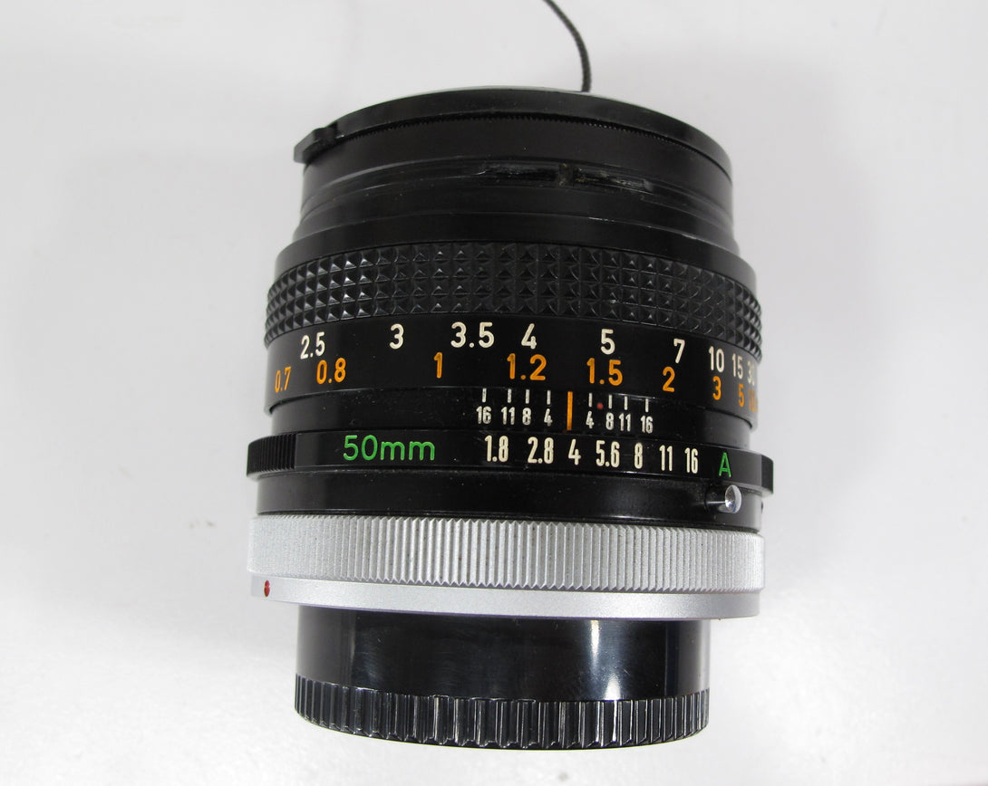 Normal lens for Canon FD mount cameras Bright f/1.8 maximum aperture Well suited to available light photography Great image quality Informative depth of field scale shows how focus and f-stop settings change results