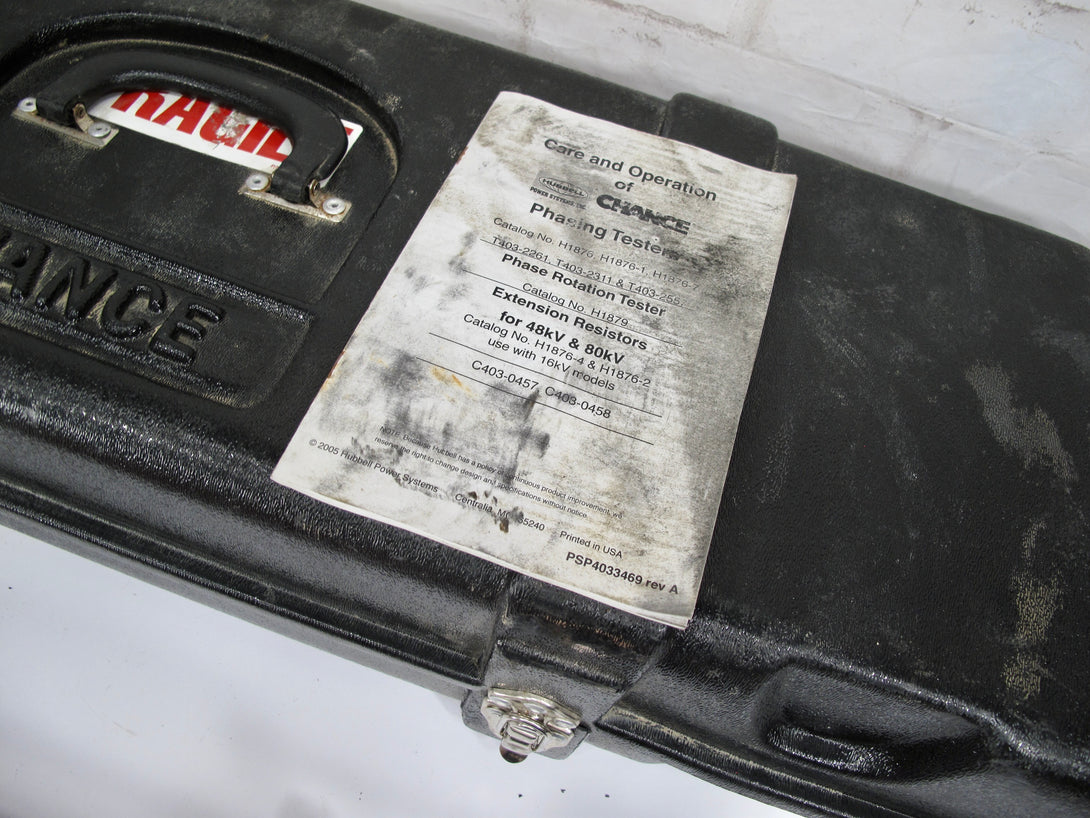 Included Accessories - H1876-1 phasing meter, two H18764 extension resistors, C4031762 DC hi pot adapter, T4030857 bushing adapter, Salsbury detector, case, manual