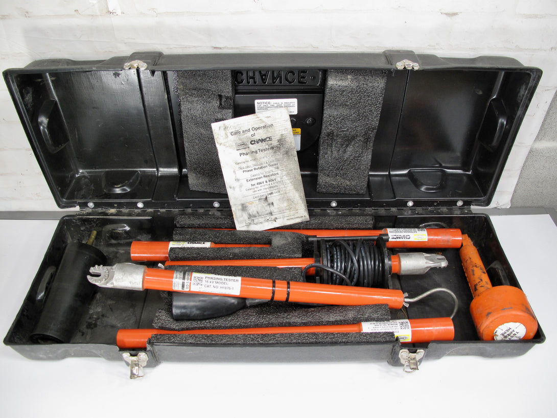 hance Phasing Testers easily determine phase relationships and approximate voltage, line-to-line or line-to-ground. Each tester consists of two fiberglass poles with end fittings threaded for interchangeable probes. The probe fittings couple with a high-impedance component encased in each pole....