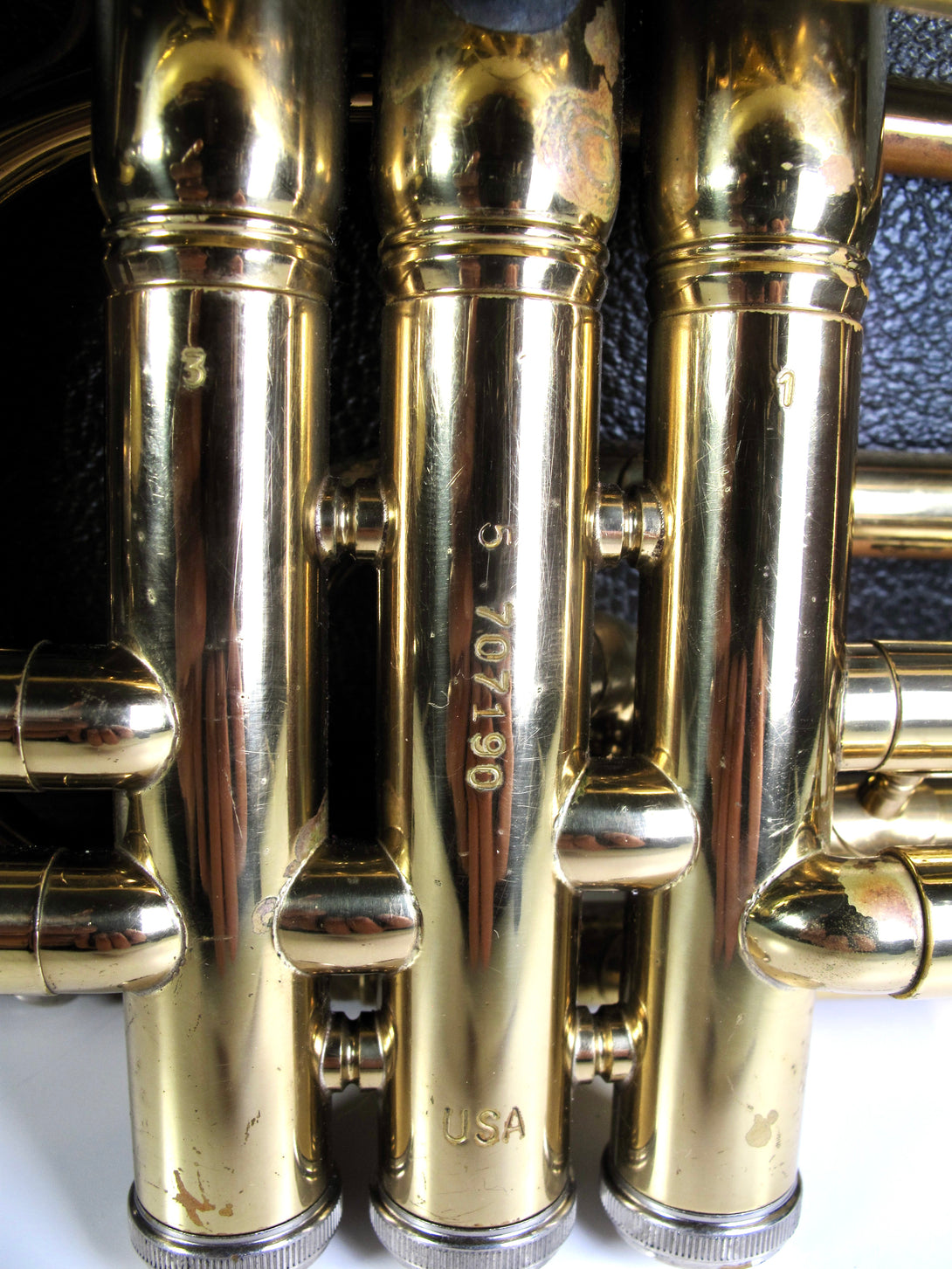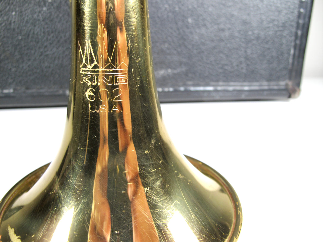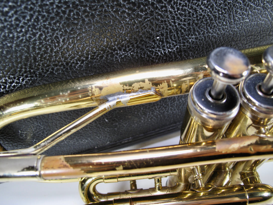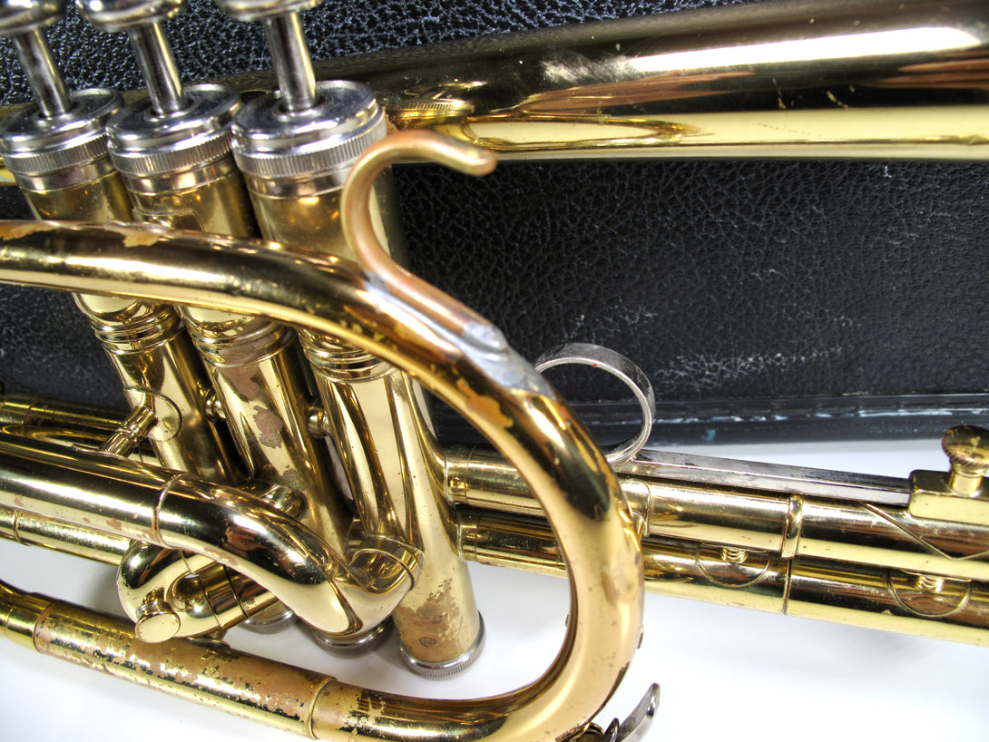 Model: 602 .462" bore, rose brass leadpipe, Monel pistons, clear lacquer finish.