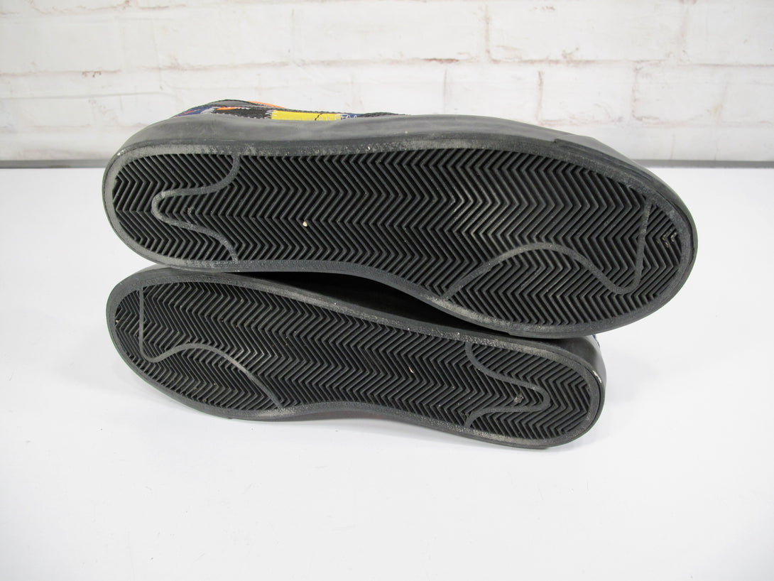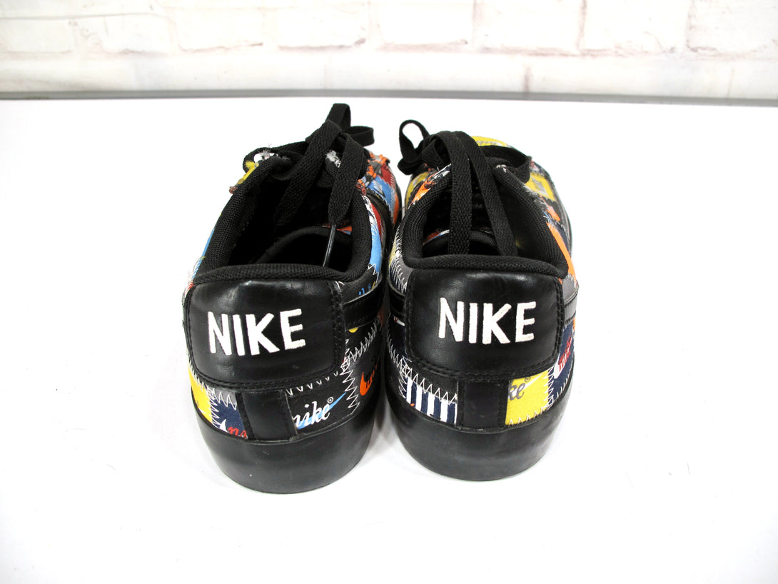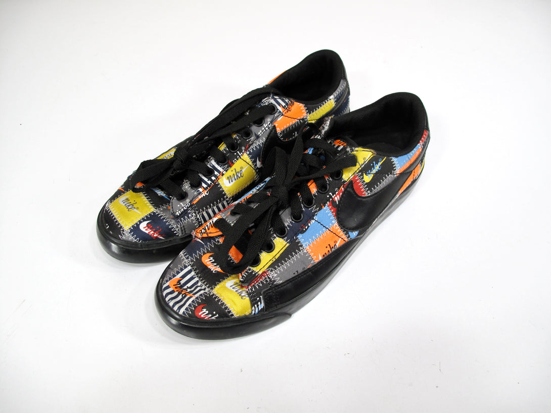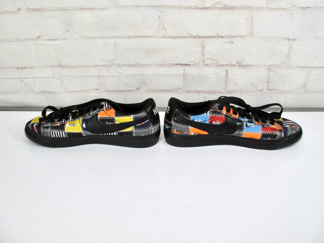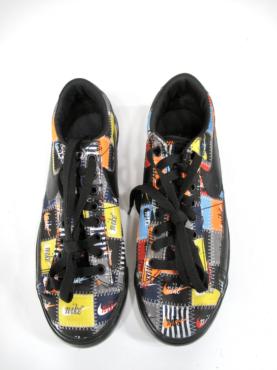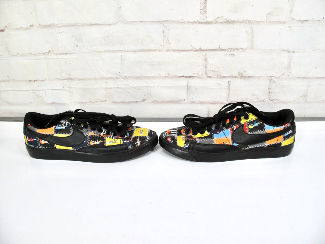 The Blazer Low 'Patchwork' released as part of the Patchwork Pack from 2019. The shoe's woven upper incorporates a series of colorful Nike logos throughout, seemingly connected by black zigzag stitching. Solid black on the Swoosh, heel patch and...