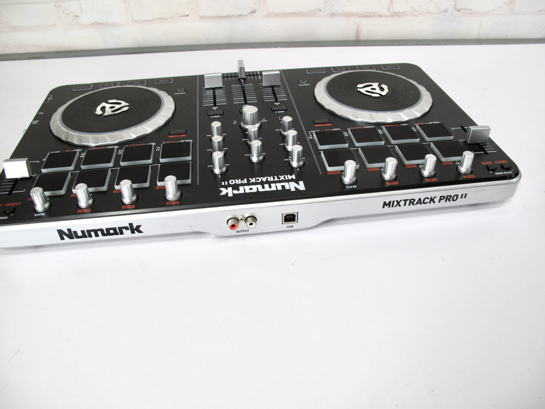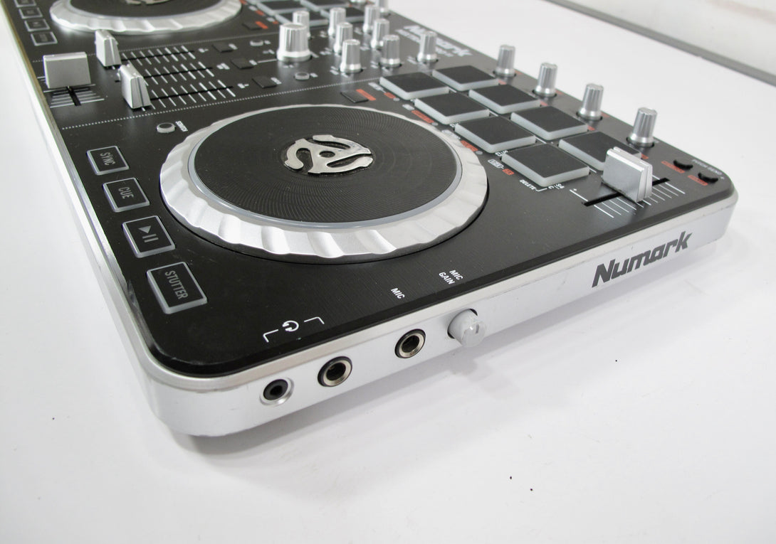 Digital DJ controller with touch-sensitive control wheels, FX controls and integrated audio interface 16 rubber drum pads for triggering samples, cue points, loops and more Built-in audio interface for PA system output, headphone cueing and microphone