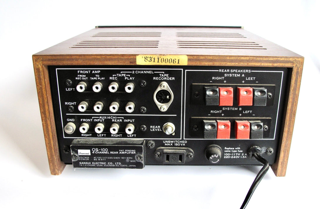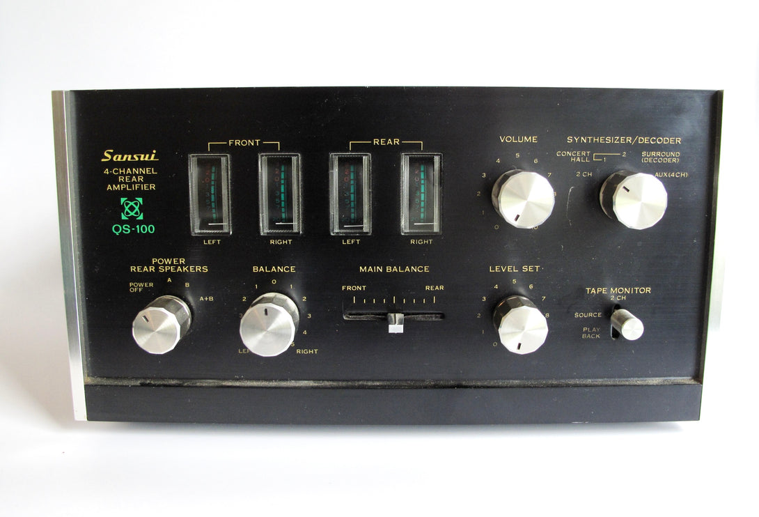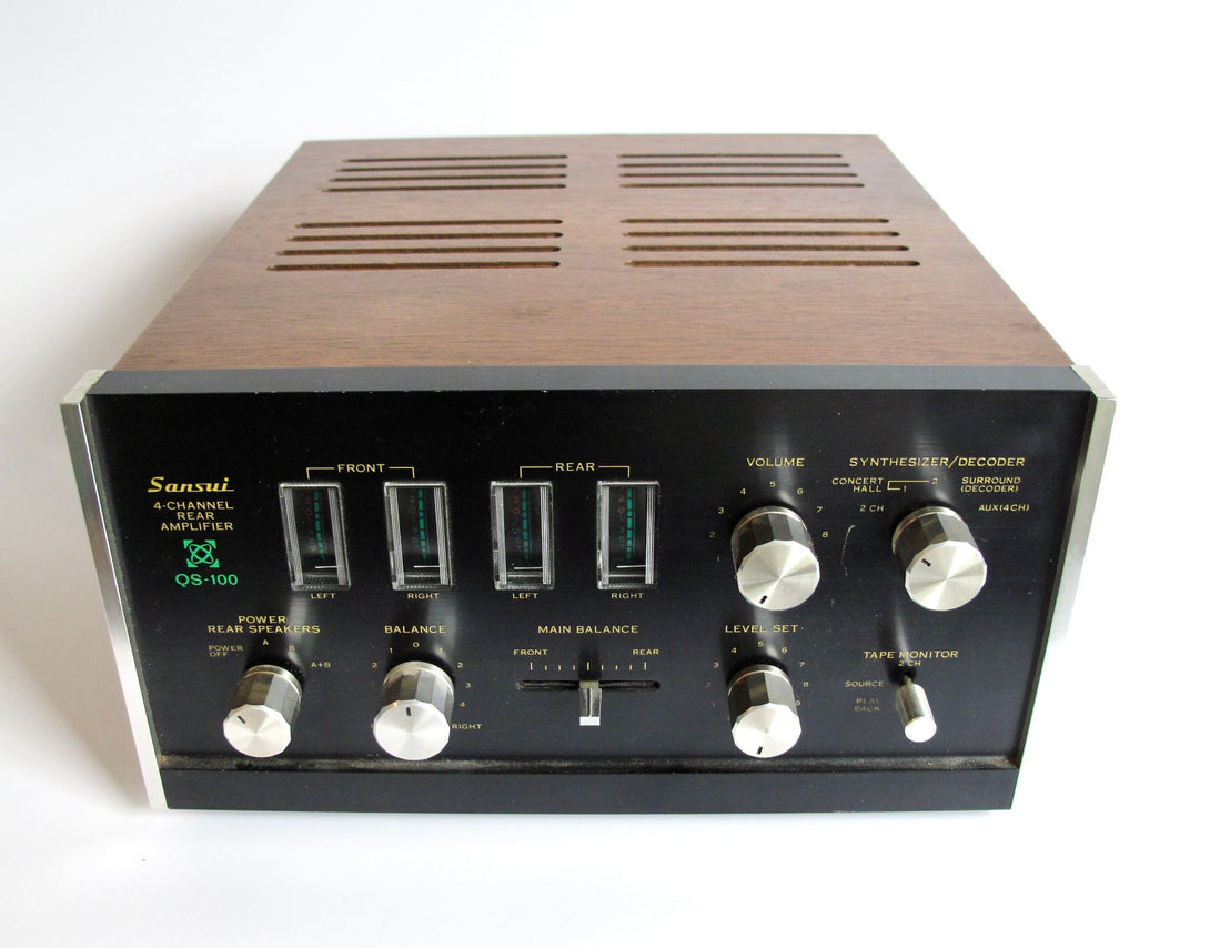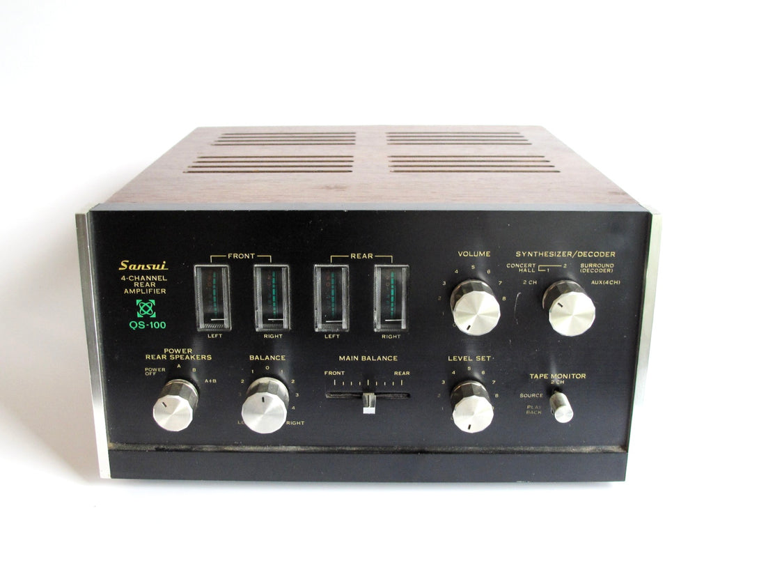 Model: QS-100 Type: Quadrophonic decoder amplifier Years of manufacture: 1971 - 1973 Made in: Japan Color: front aluminum brushed silver / black, wooden cabinet Remote control: no Power consumption: 85 W Dimensions: 250 x 127 x 278 mm (WxHxD)...